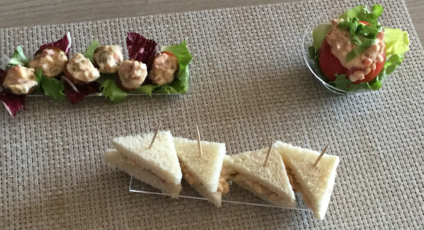 Ya no me enrollo más y vamos con lo que necesitamos, (os propongo dos tipos de rellenos, receta PASTEL DE VERANO(ver receta) o receta HUEVOSRELLENOS (ver receta)).