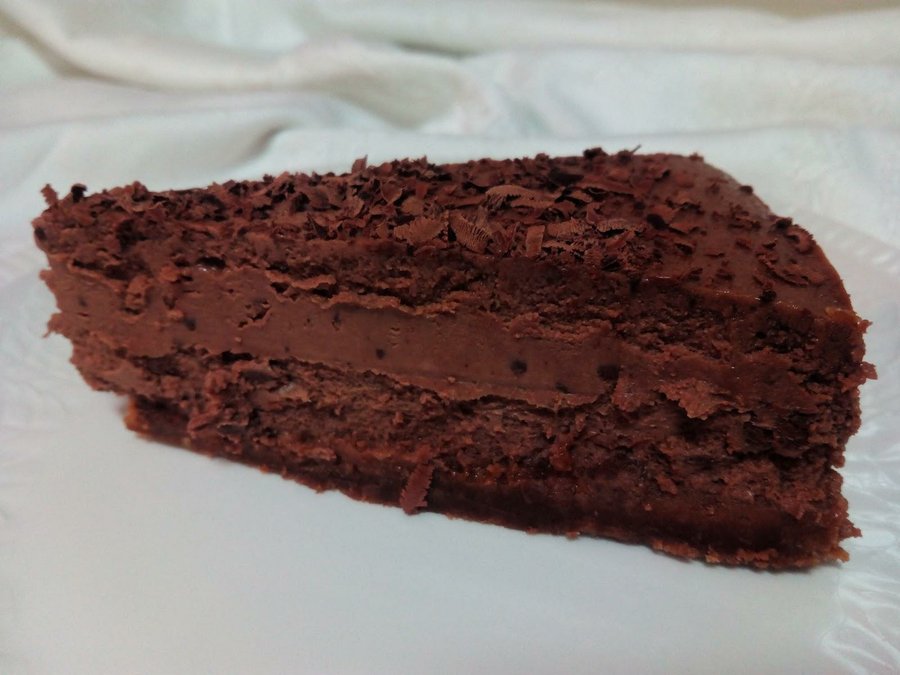 Una tarta cremosa para los más chocolateros. Lleva una base de galleta y para la tarta necesitaremos queso crema, chocolate, azúcar y huevos. Después de preparar la base, prepararemos el relleno mezclando todos los ingredientes y vetiéndolos sobre la galleta. Hornear y refrigerar.