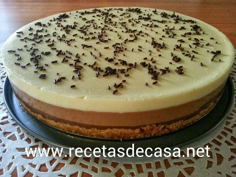 No uno, ni dos... tres pisos de chocolate sobre una base de galleta. Una tarta que se ha hecho muy popular y que si todavía no has preparado, te animamos a hacerlo pues no te defraudará. La base de los ingredientes son los tres tipos de chocolate blanco, con leche y negro y la nata (crema de leche). Tendremos que ir mezclando cada uno de ellos con la nata (crema de leche) e ir montando la tarta. Muy fácil.