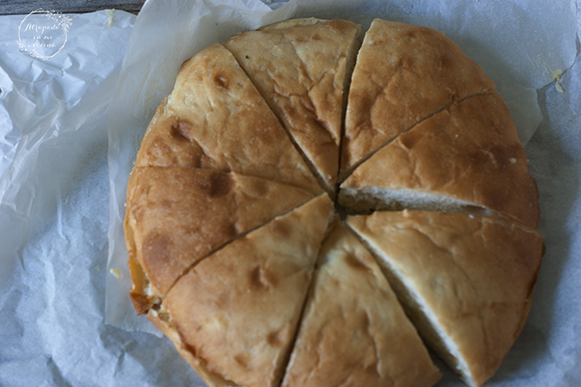 En el bol de la amasadora ponemos la harina, junto con la sal, removemos, y poco a poco vamos añadiendo el azúcar y los ingredientes líquidos, disolviendo en un poco de leche la levadura. Amasamos durante unos diez minutos. Ya veréis que es una masa que se maneja bien. Después del amasado engrasamos un bol con aceite y disponemos la masa en forma de bola. Tapamos con papel film y dejamos hasta que doble su volumen. Una vez pasado el tiempo, 1 o 2 horas. Dividimos la masa en dos, desgasificamos, sacando el aire de la masa y hacemos dos bolas con ella, disponemos sobre una bandeja de horno cada una de ellas, protegida con papel vegetal, y volvemos a tapar, y a esperar de nuevo que doble su volumen. Una vez pasado este segundo levado con la yema de los dedos vamos aplastando la masa hasta conseguir una torta de un dedo de grosor. Volvemos a tapar hasta que doble su volumen.