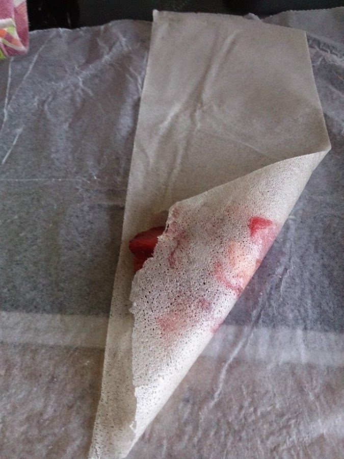 Primero los iba a hacer sólo de fresa (que fué cuando saqúe la foto) cuando me acordé de que tenía gotas de chocolate, así que los deshice y le eché las gotas, pero no me dí cuenta de volver a sacar la foto.
