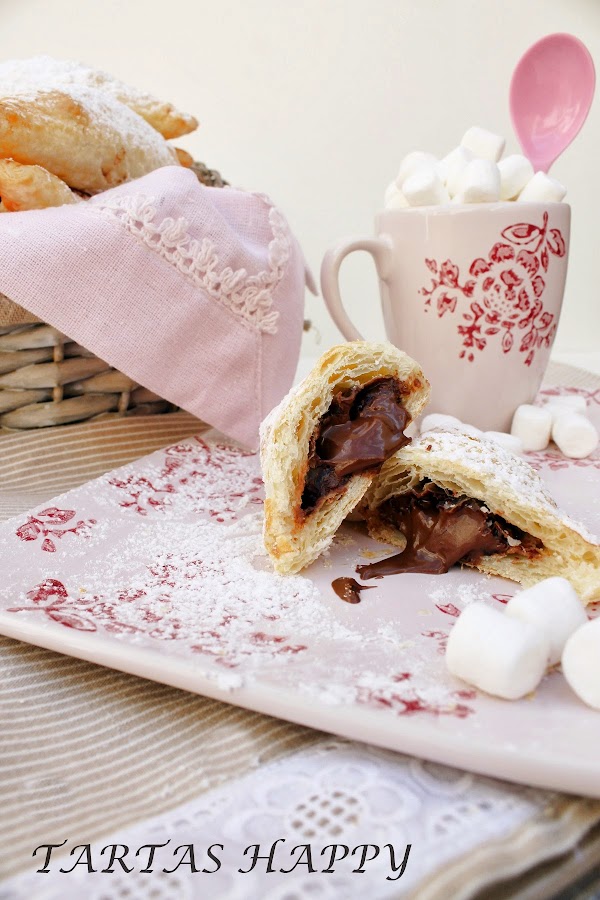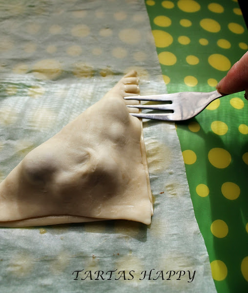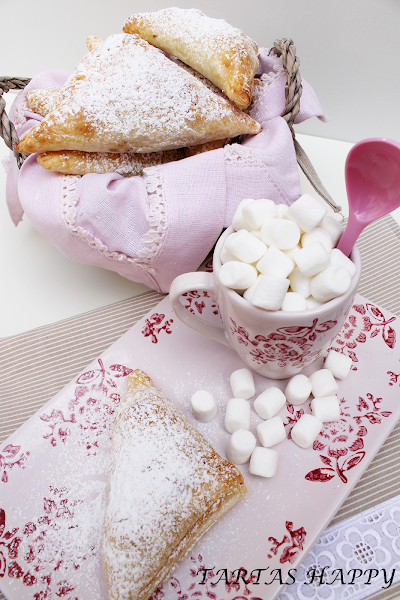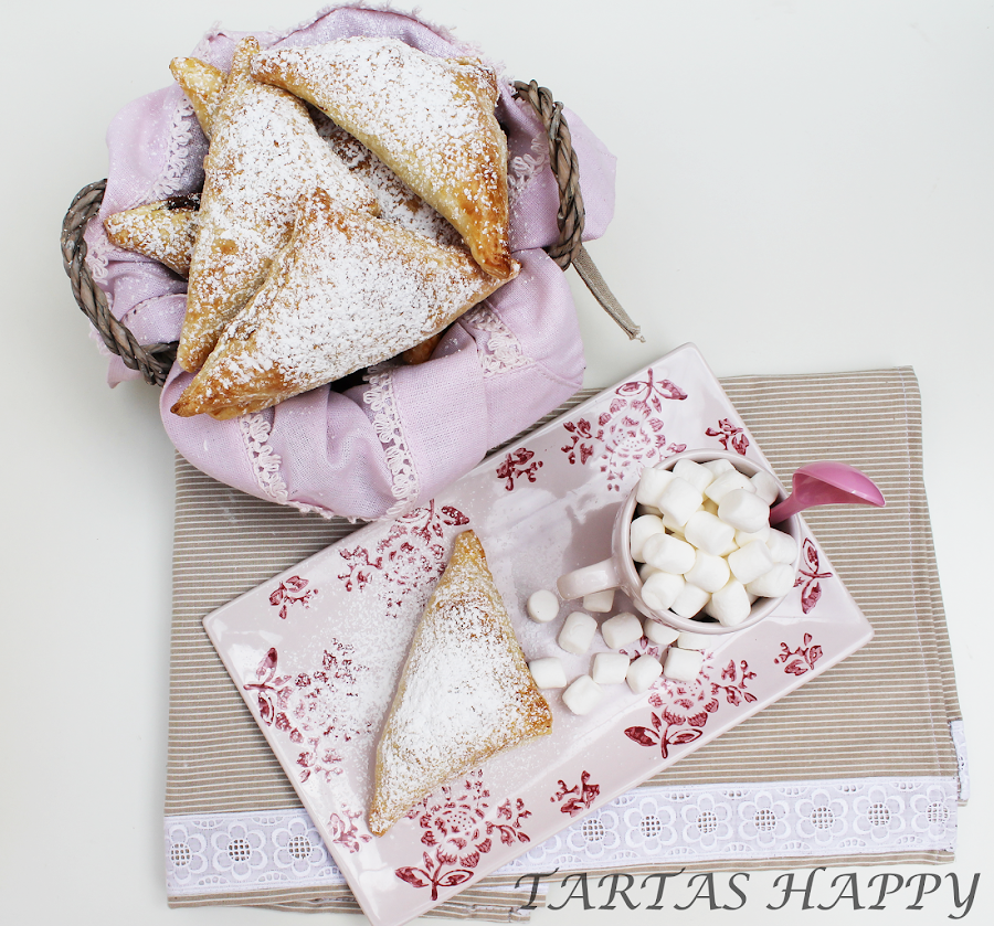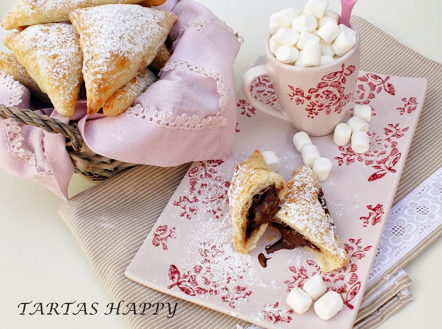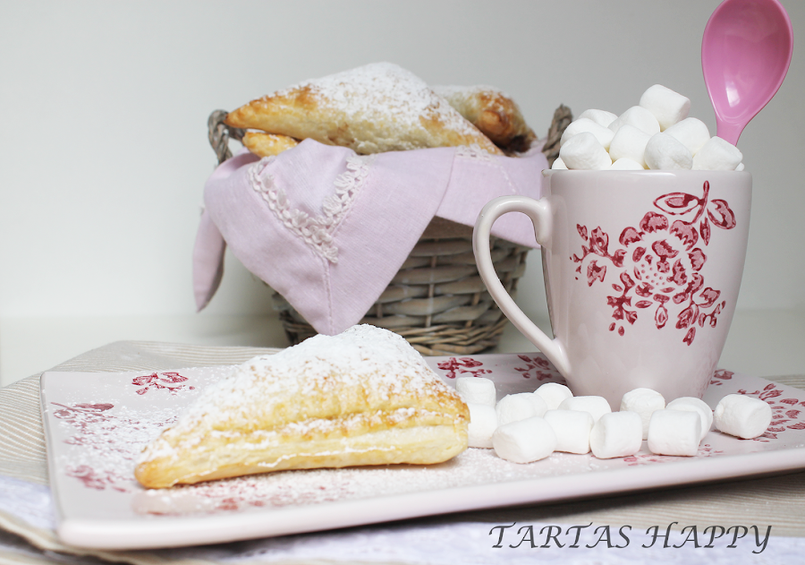 Dejad que se enfríen un poco antes de probarlas que el hojaldre guarda mucho el calor,aunque por fuera parezca que no quema por dentro quema (todavía me duele la lengua ).
