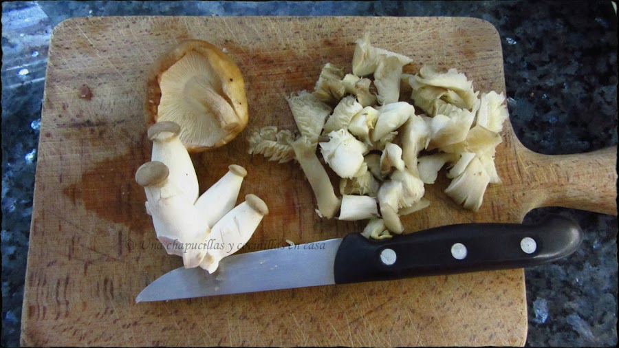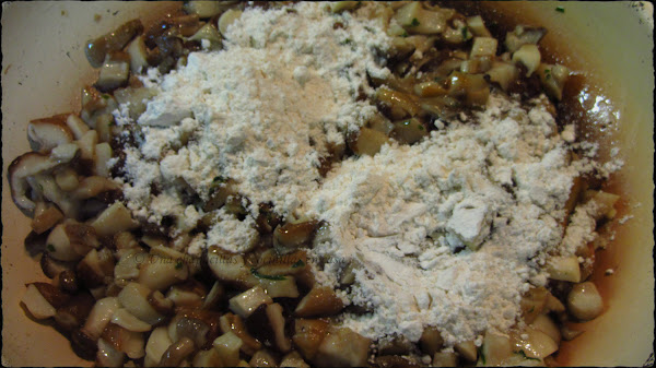 Cuando lleven unos minutos (no cocinar las setas demasiado) agregar un par de cucharadas de harina y remover bien para que se reparta y se haga bien la harina.