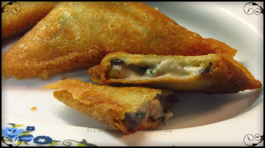 Es la primera vez que uso pasta brick y la verdad es que me ha encantado el resultado, esta navidad la he preparado para los entrantes y han quedado riquisimos, decidí rellenarlos con una bechamel ligera de diversas setas, el resultado, unos triángulos con un suave relleno y crujientes por fuera.