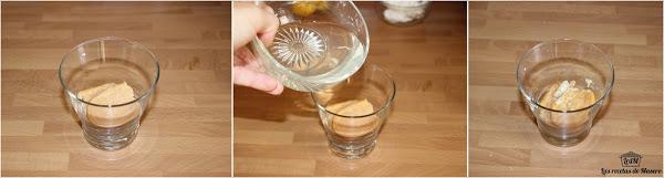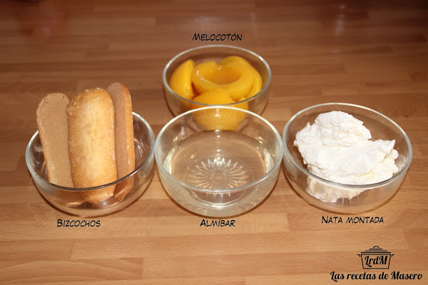 Añadimos un chorrito del almíbar del melocotón. No demasiado para que no quede muy mojado.