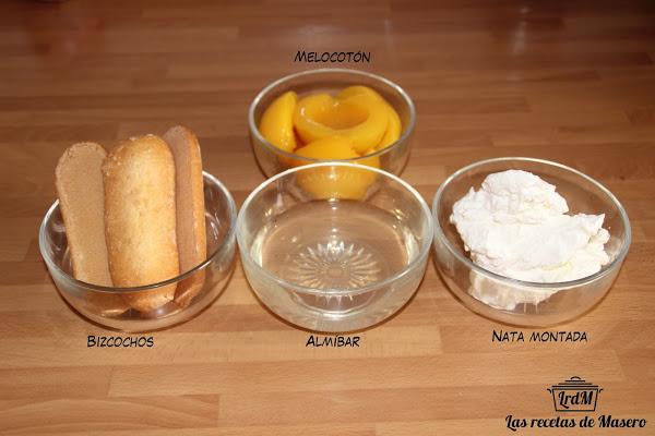 Separamos el melocotón del almíbar( lo guardamos a parte) y lo escurrimos muy bien.