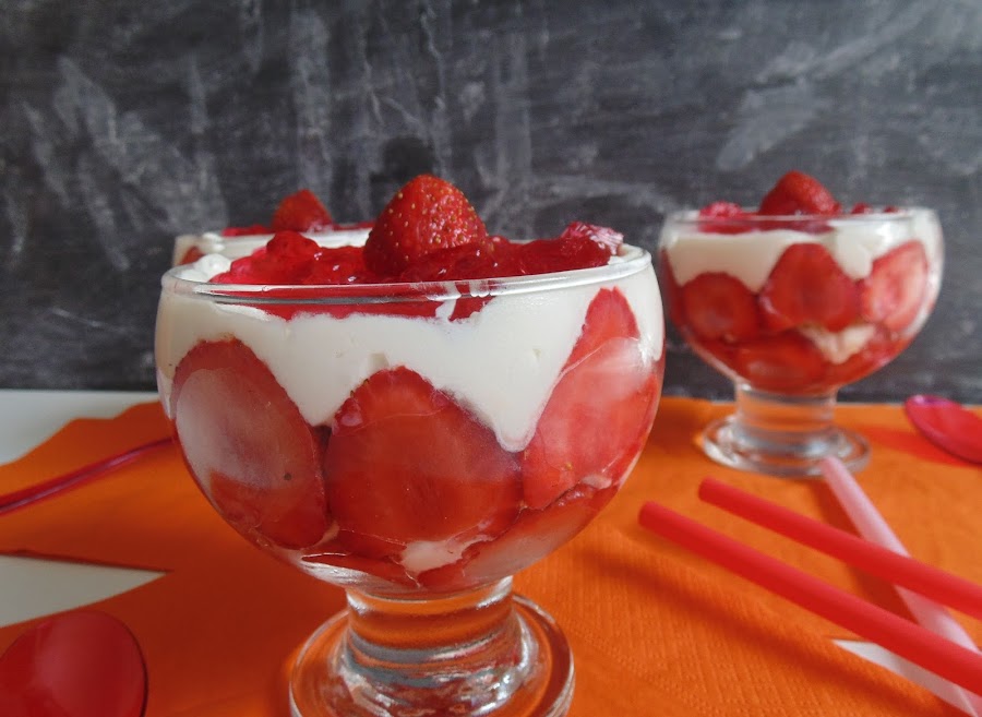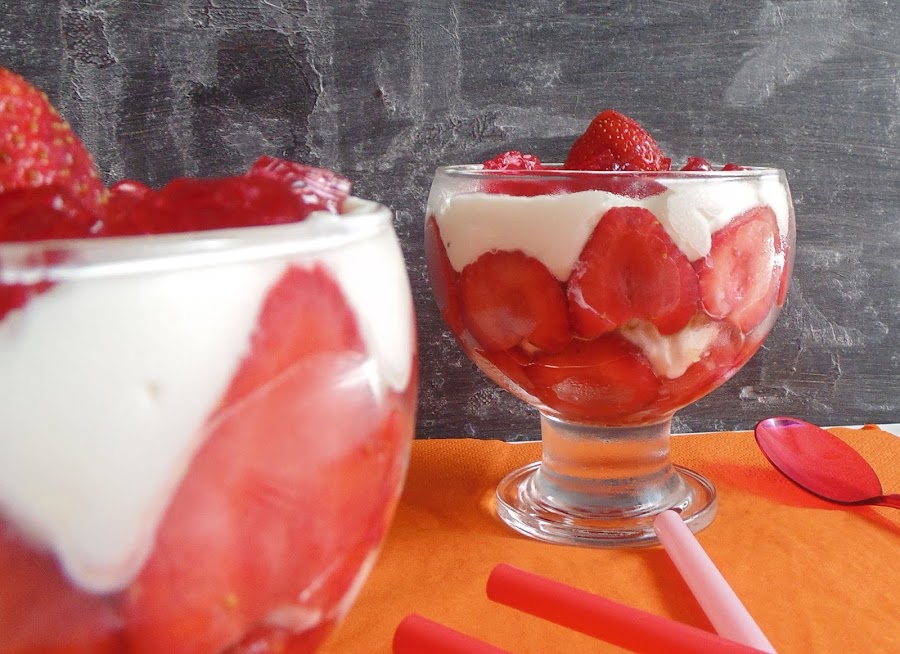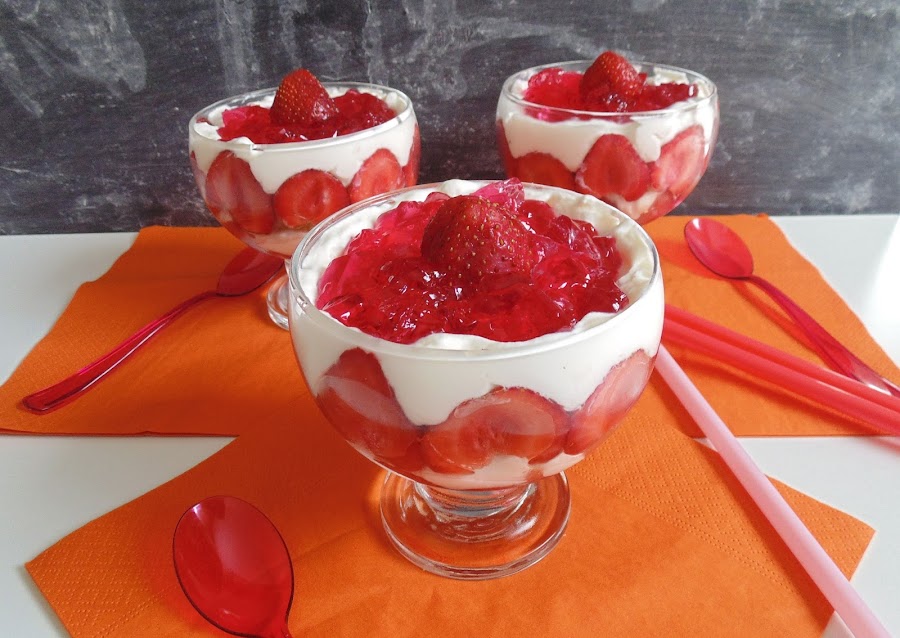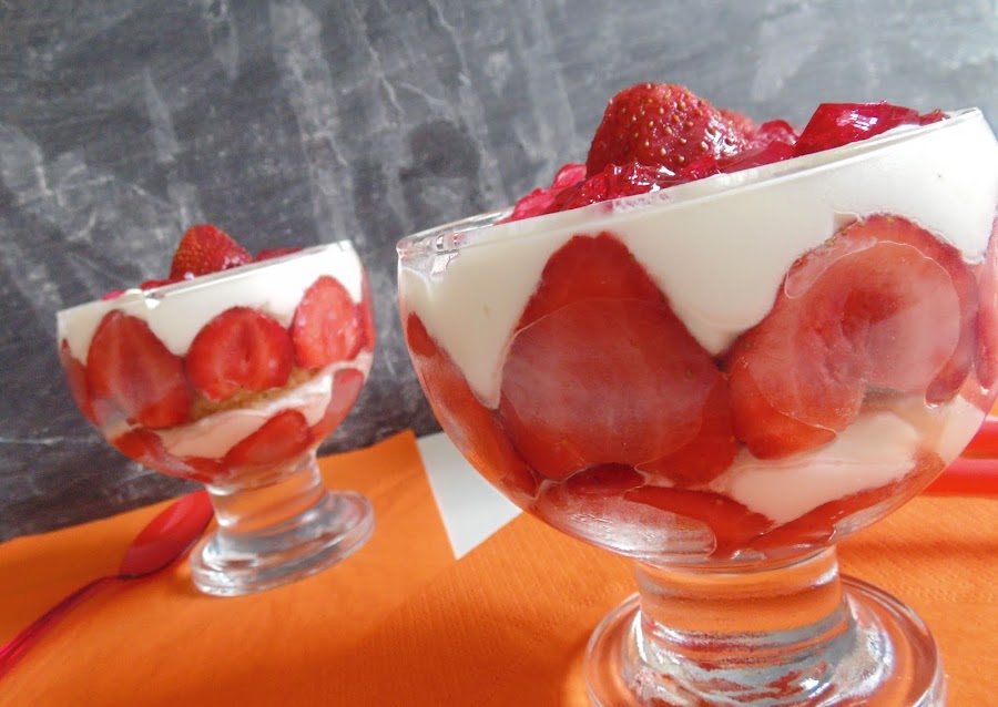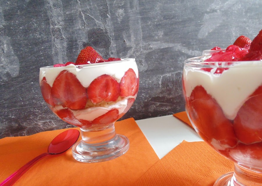 Antes de que se acabe la temporada de fresas, no podía faltarnos un postre en el que se luzcan. Si además se trata de un postre fácil de preparar, fresco y muy apetecible, no hay excusa para no hacernos con una caja de fresas y ponernos a montar estas deliciosas copas, con este postre tan británico. Por supuesto, esta es mi versión, fácil y a mi gusto? seguramente habrá quien diga que el triffle original es diferente. Seguramente tenga razón. Pero eso no quita que éste sea bueno, bonito y sabroso, así que allá vamos.