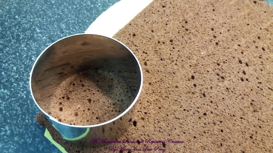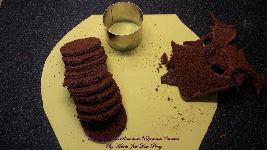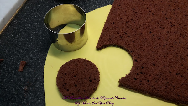 Con ayuda de un cortapastas, un aro de emplatar o simplemente un vaso, cortamos círculos de bizcocho para colocar en nuestras copas.