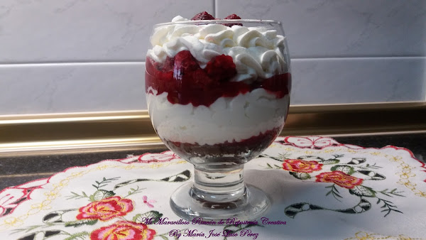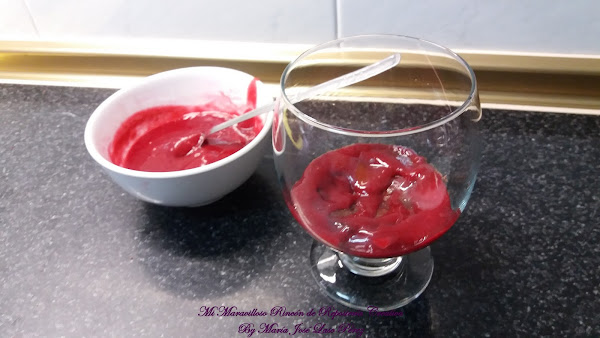 Añadimos un par de cucharadas del coulís de frambuesas y alguna fruta troceada si queremos encontrarnos tropezones.
