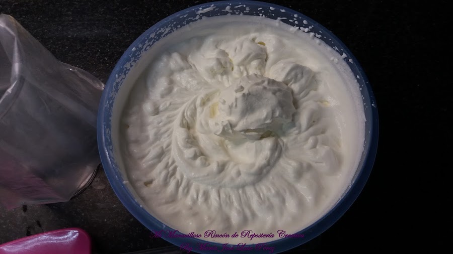 Comenzamos montando la nata (crema de leche), o crema de leche, con unas varillas eléctricas, hasta que esté bien firme.