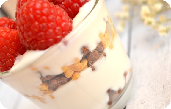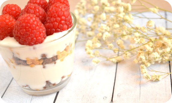 Vamos, que es que hasta vergüenza me da explicarte jejejeje Pero como ves queda un postre espectacular y muy muy rico. Los cereales le dan el toque crunch, el yogur griego la cremosidad y las frambuesas la frescura de la fruta. La combinación es perfecta y lo mejor de todo es que puedes hacerlo con lo que tengas por casa como hice yo. Puedes usar los cereales que uses normalmente o simplemente galletas trituradas, el yogur que mas te guste o cambiarlo por nata montada (crema de leche) y la fruta lo mismo, pon la que tengas por el frutero y consigue en dos minutos de reloj un postre con el que quedar como una reina. Aquí desde luego no quedaron ni las migas, como se suele decir jejejeje