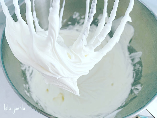 Finalmente, preparamos la capa de crema de queso. Introducimos la nata (crema de leche) y el queso en un vaso de un procesador de alimentos y batimos, primero a velocidad baja para que ambos ingredientes se mezclen bien y, después, subimos la velocidad hasta que consigamos montarlos. Cuando la crema esté casi lista, añadimos el azúcar, poco a poco, mientras terminamos de montar. Reservamos también.