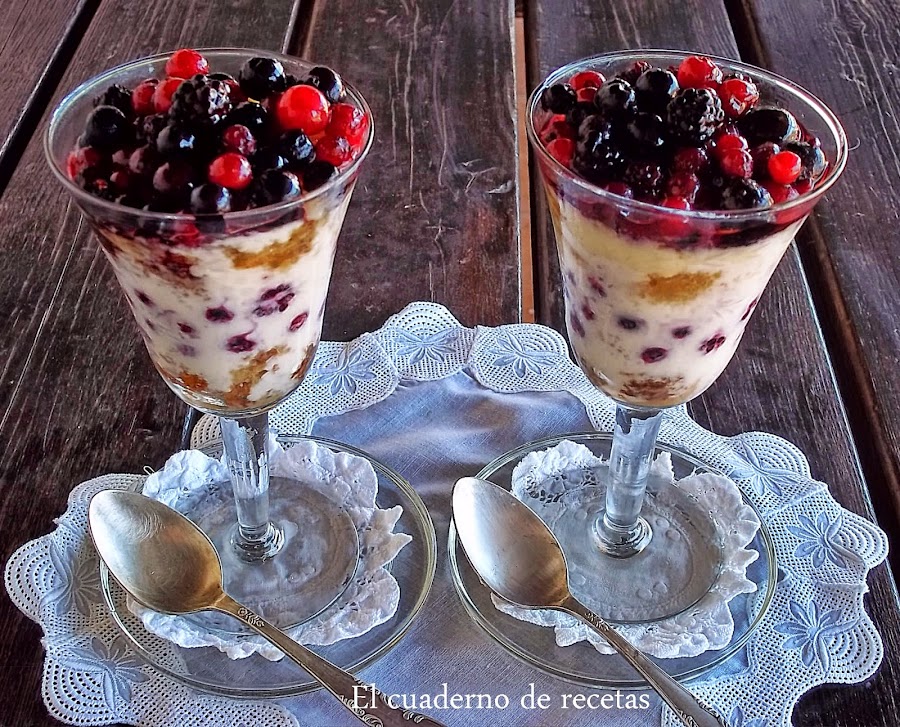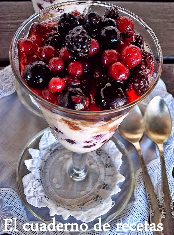 * Los frutos rojos son congelados, no los descongelo antes de montar las copas, lo hacen mientras esperan el reposo en el frigo.