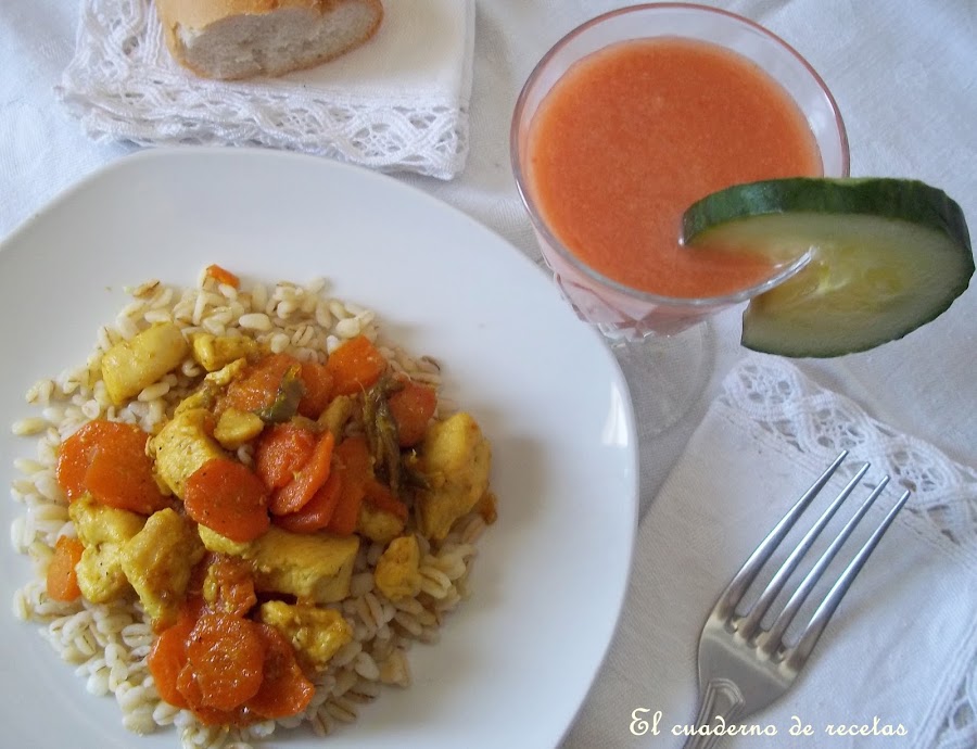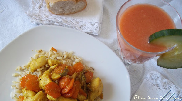 Para servirlo, colocamos en el fondo del plato el trigo y sobre éste, el pollo con las verduras.