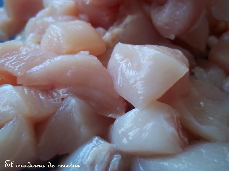 El pollo lo partimos en tacos y salpimentamos.