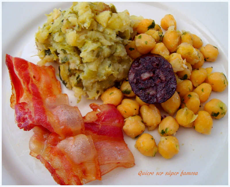 Las legumbres preferidas para elaborar este tipo de platos son las de piel fina y muy tiernas. Son tan sabrosas que se pueden comer hervidas con un simple chorrito de aceite de oliva. Por eso no es de extrañar que las sirvan refritas o simplemente hervidas y que no siempre formen parte de un estofado o guiso. Los garbanzos, en este caso, eran ligeramente harinosos y muy dulces, los ideales para comer como guarnición o hacer en sartén.