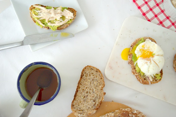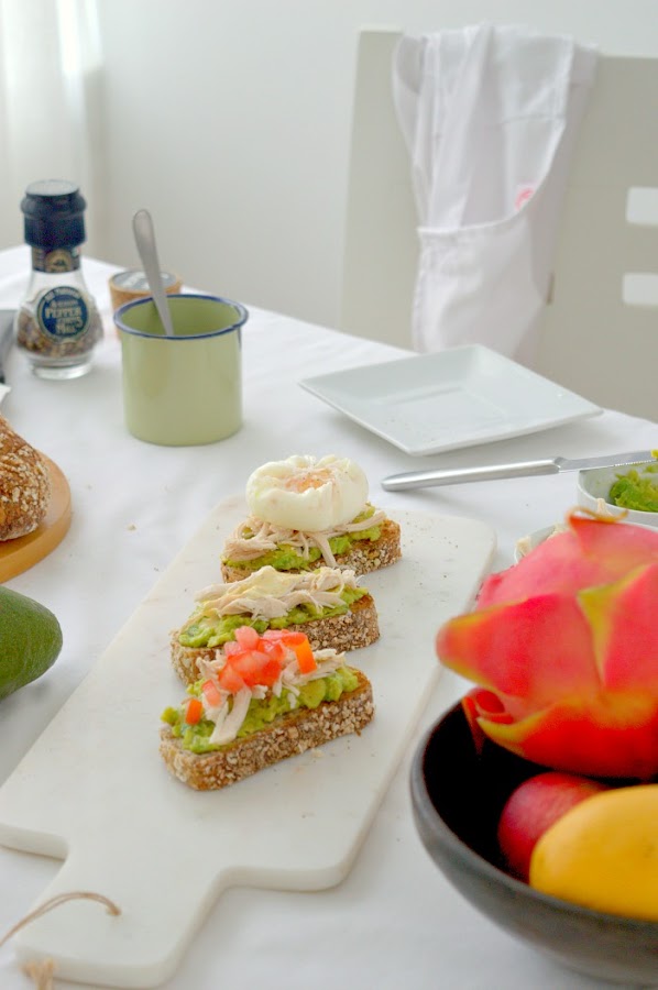 TOSTAS CON AGUACATE, POLLO Y HUEVO POCHÉ