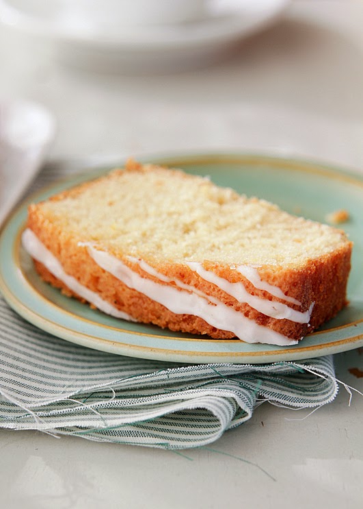 Adicionalmente he preparado un almíbar de limón para humedecer el cake (pueden verse los huequitos en la foto) y finalmente lo he cubierto con unas rayas de glaseado de limón, no por completo para que no quedara taaan dulce.