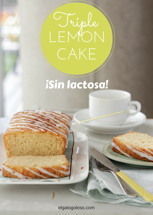 Este bizcocho de triple limón se me ocurrió al ver este post. He modificado la receta para hacerla sin ningún tipo de lácteos (ni mantequilla, ni leche, ni yogurt) así que es ideal para los intolerantes a la lactosa. En su lugar he utilizado aceite vegetal (también puede utilizarse aceite de oliva y quedará divinísimo) y limón en tres fases para que se note mucho mucho su sabor cítrico.