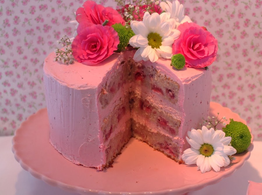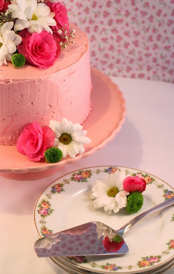 Esta receta está adaptada de su layer cake de arándanos y de su receta de buttercream de merengue suizo de fresa.
