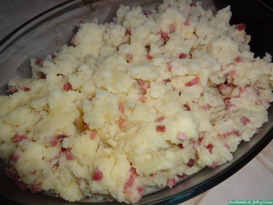 Una vez aclarado esto, podemos comenzar a hablar de un plato que nos sirve de la forma que mas nos apetezca, ya que al contener jamón, queso y patata, nos puede servir perfectamente como segundo plato, o en menos cantidad para acompañar cualquier carne, o incluso como relleno de alguna verdura o de la misma patata... Podemos utilizarlo como mejor nos convenga.