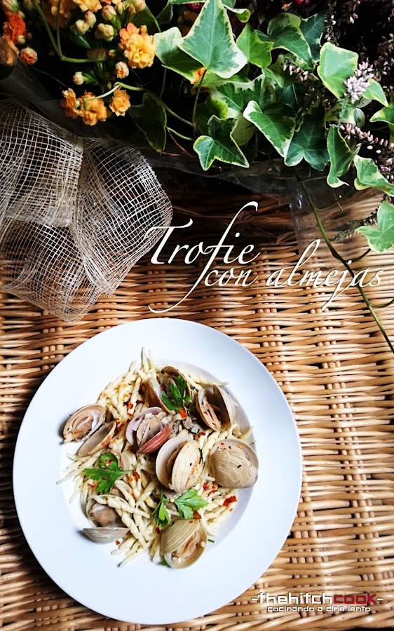Para la ocasión tiro de Trofie - que compré en el Mercado Di Fiori en Roma - que es una pasta corta, fina y rizada. Ni qué decir tiene que podéis emplear el tipo que más os plazca o que tengáis por la despensa a la espera de un futuro culinario a la altura. Completamos la receta con toques de peperoncino, jengibre y especias para dar personalidad a este clásico universal de la cocina italiana.