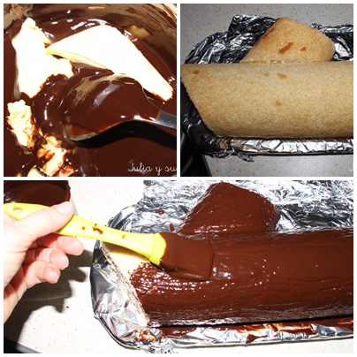 Una vez fría con un tenedor vamos haciendo líneas imitando las de un tronco de leña.