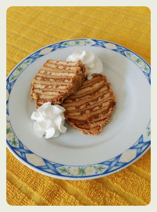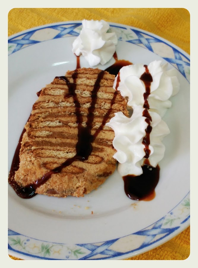 TRONCO DE GALLETAS CON NATA (crema de leche) Y SIROPE DE CARAMELO