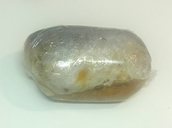 coloca el otro filete encima y envuelve con el film, haciéndolo rodar sobre la superficie de trabajo, como si fuera un caramelo, para que quede bien cerrado.