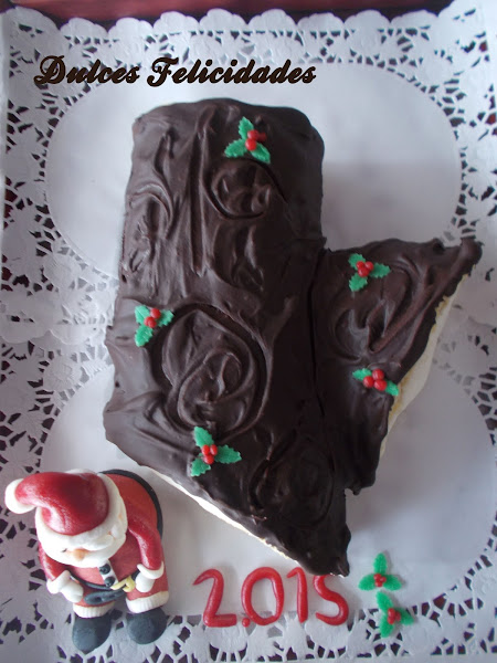 Os presento nuestro postre del día de Navidad: un tronco relleno de crema de queso y cubierto con chocolate. En principio parecía enorme, pero después de probarlo, nos supo a poco.