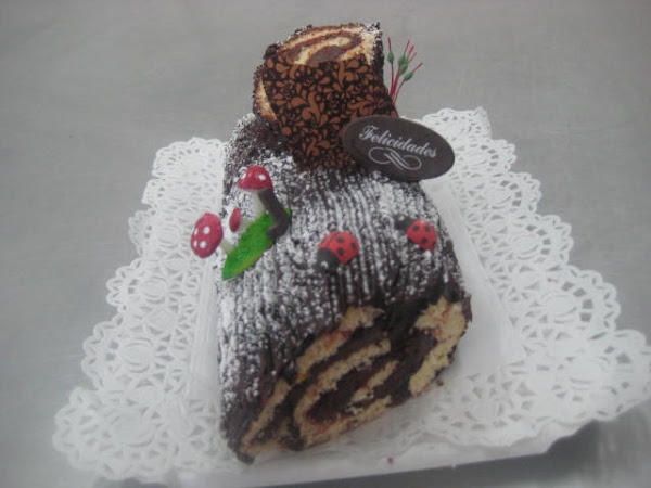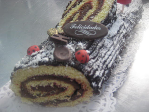 Preparación: Calentar la nata (crema de leche) indicada para el relleno, hasta que comience a hervir, entonces contar un minuto y retirar del fuego. Verter sobre las dos clases de cobertura y trabajar con varillas, hasta que esté bien emulsionado. Dejar reposar en frío durante 24 horas antes de emplear. Montar los huevos con el azúcar y las dos cucharadas soperas de agua, hasta que tengan punto de relieve o blanqueen, si se hace a mano mejor hacer yemas y claras por separado. Seguidamente agregar la harina poco a poco e integrar con movimientos envolventes. Llenar con esta masa una placa de horno forrada con papel engrasado y cocer a 180º C durante 10-15 minutos. Enrollar sobre el papel o un paño limpio y dejar reposar unos minutos. Una vez frío, desenrollar con cuidado y pincelar con una mezcla hecha con el agua, el azúcar y el licor elegido o el zumo de naranja. Seguidamente extender una capa fina de mermelada de frambuesa y después la trufa cocida; enrollar, apretando un poco, envolver en papel film y dejar reposar en la nevera un rato para que tome cuerpo o de un día para otro. Para hacer la cobertura fundir en el microondas o sobre el fuego en un cazo, las dos clases de cobertura, la nata (crema de leche) líquida y la mantequilla. Trabajar bien la mezcla y dejar reposar hasta que esté tibia. Colocar el tronco sobre una rejilla y verter la crema de chocolate, dejando que caiga sola por todo el tronco. Cuando ya el chocolate deje de caer, retirar de la rejilla, poner en un bandeja y dejar en la nevera unas horas. Hacerle antes algunas marcas para simular el tronco de un árbol. Una vez frío adornar al gusto, colocar en bandeja de presentación y listo para degustar.