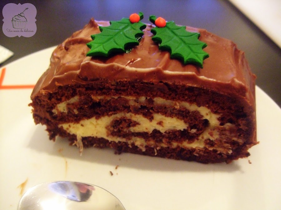 Aquí tenéis una propuesta para animar vuestras cenas de fiestas de fin de año: un tronco de navidad de chocolate y coco.
