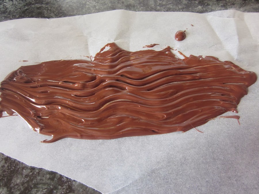 Yo quise emular un tronco nevado y derretí un trozo de chocolate en microondas,lo puse sobre papel de horno,y cuando empezó a cuajar,le hice surcos con un tenedor, lo enfriamos en nevera y después partimos a nuestro gusto para adornar.