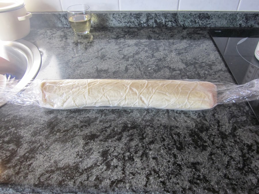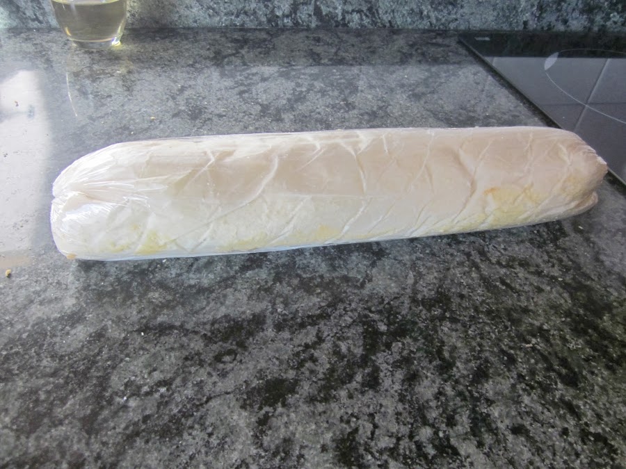Después del relleno, volvemos a enrollar con ayuda del papel y dejamos un rato en la nevera bien envuelto.