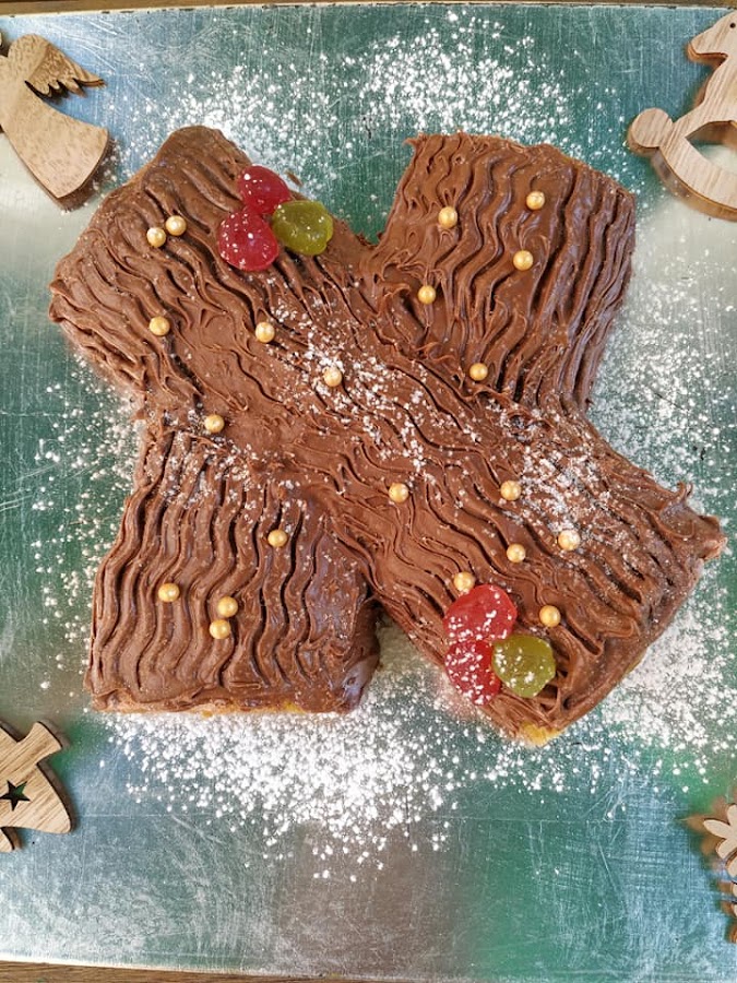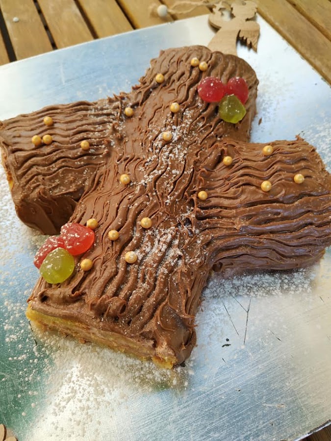 Hemos preparado un tronco de Navidad sin leche, sin huevo y sin frutos secos aunque en el blog ya hay una receta de tronco de Navidad este año hemos hecho otra versión.