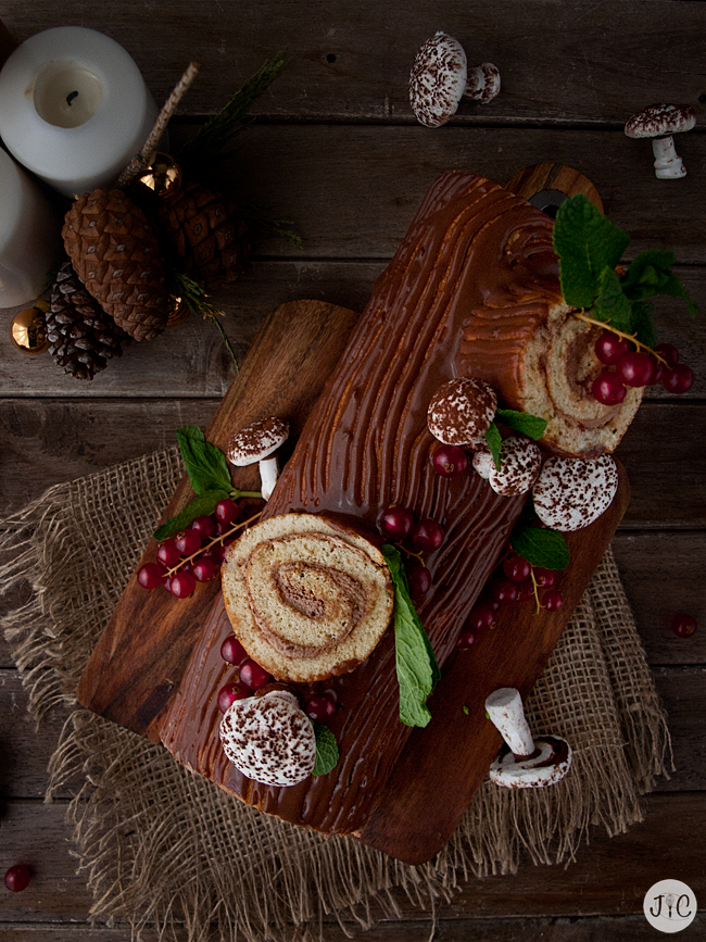 Nosotros normalmente no ponemos otro postre que no sean turrones, pero muchos sois los que decidís salir de la típica bandeja de turrones y queréis introducir nuevos postres. Yo hoy os propongo este delicioso tronco de Navidad, un postre que no había preparado nunca hasta ahora pero que tenía muchas ganas de preparar. Además, me ha encantado decorarlo, dándole ese toque navideño.