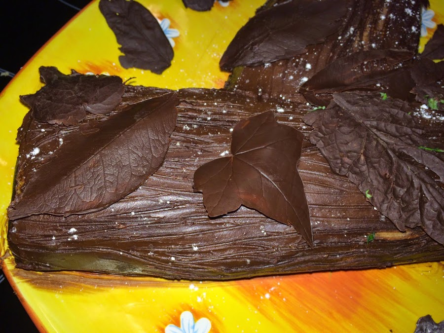 En el siglo XIX , el uso cada vez más extendido de las estufas en lugar de las chimeneas hizo que se modificara la tradición y se sustituyera el tronco de leña por un postre que lo simulara. Las referencias históricas apuntan a varios inventores posibles: un aprendiz de una chocolatería del barrio parisino de Saint-Germain-des-prés alrededor de 1834, o el pastelero Bonnat de la ciudad de Lyon, que confeccionaba en 1860 un tronco helado con ganaché de chocolate. La hipótesis más divulgada se refiere al libro Mémorial de la pâtisserie et des glaces publicado en 1898 poe el pastelero y heladero Pierre Lacam, donde aparece por primera vez una receta de tronco de Navidad de mazapán relleno de helado y cubierto de de fondant de chocolate que imitaba la madera.