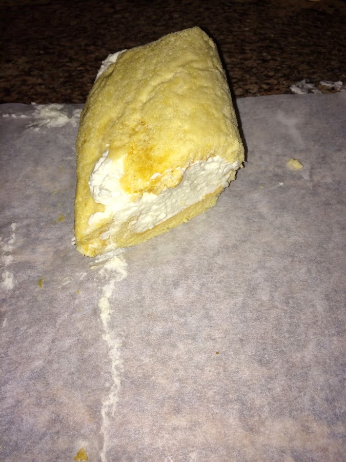 Una vez lo tengamos relleno vamos a cortar un trozo en diagonal, que pegaremos con chocolate en el lateral para simular una rama del tronco principal.