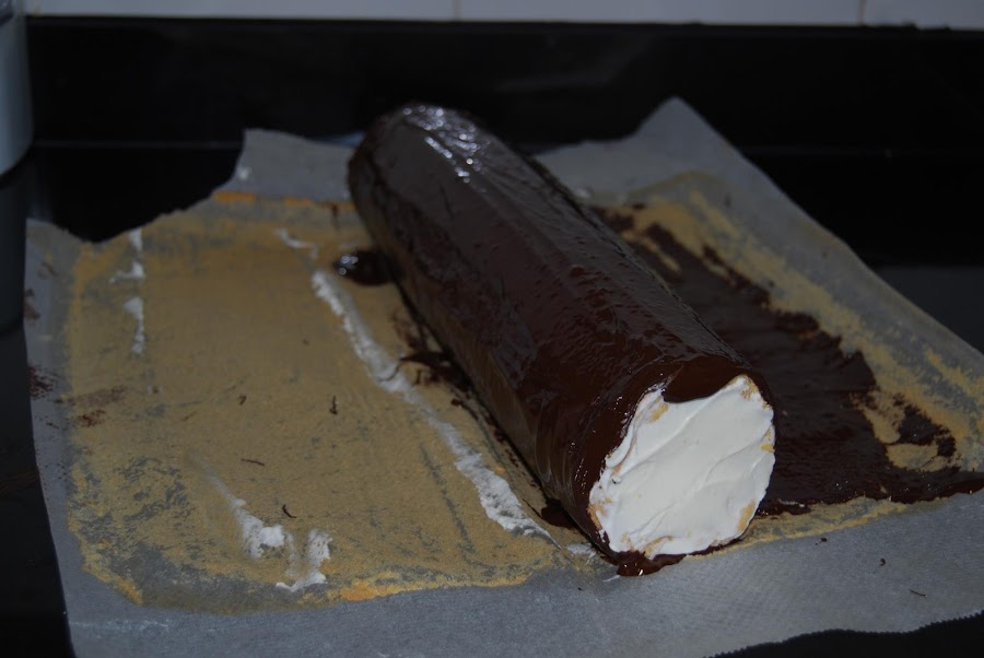 La cobertura de chocolate: Se prepara con el chocolate troceado fundido al baño junto con la mantequilla. Dejar templar.