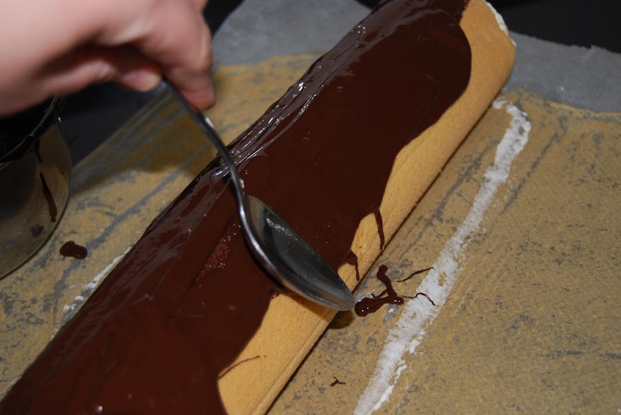Ir echando el chocolate por encima del brazo, cubriéndolo todo.