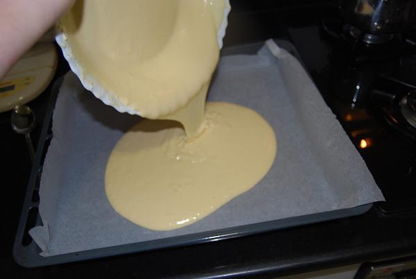 Poner papel vegetal sobre una bandeja para el horno y extender la mezcla.Introducir la bandeja en el horno y hornear 20 minutos a 180ºC.
