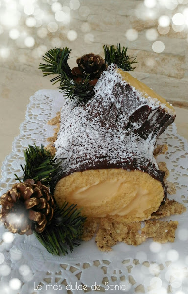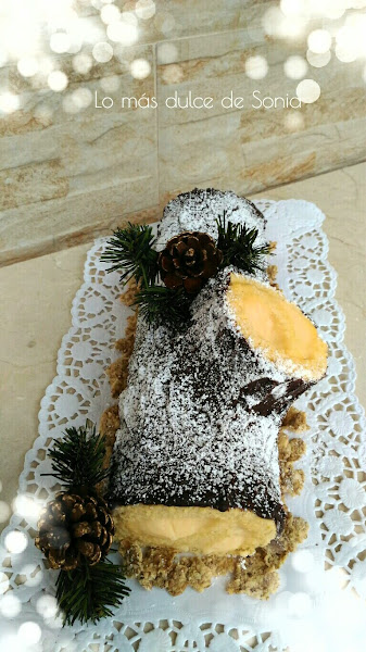 Extendemos el chocolate por encima, ayudándonos de una espátula, cuchara. Dejamos reposar y unos 20 min. Pasado el tiempo podemos hacer unos surcos, para simular la corteza de un árbol.