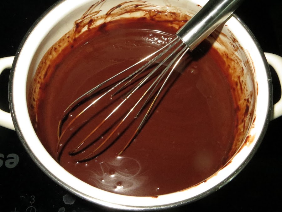 Y por otro lado, echamos en un cazo el chocolate y la nata (crema de leche) y los deshacemos para la cobertura.