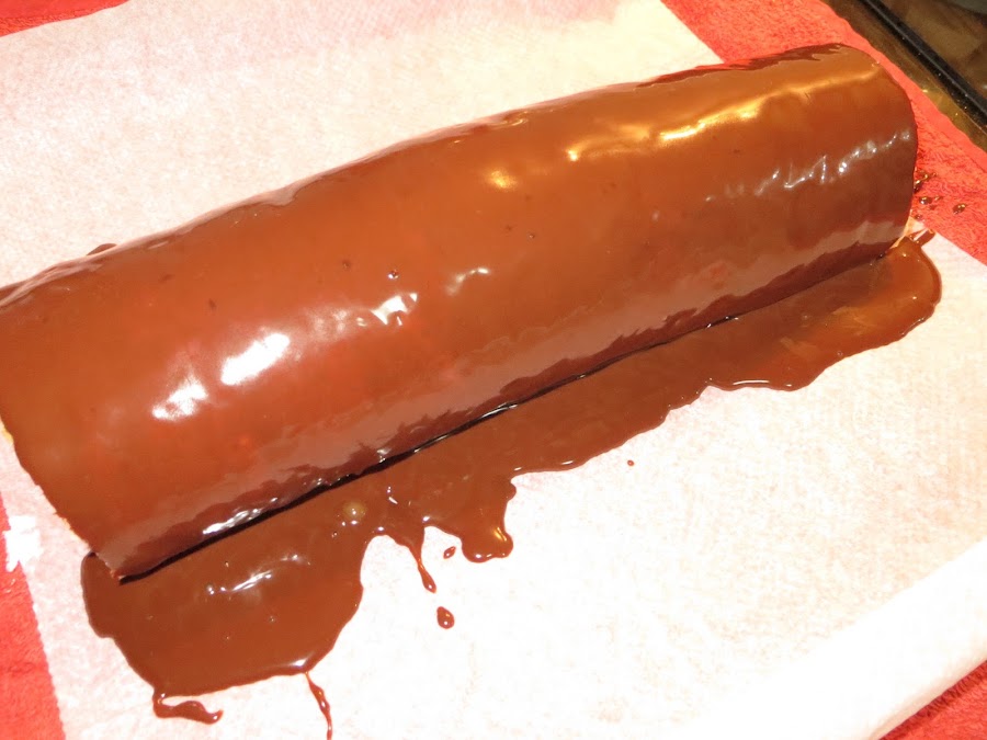 Lo metemos al frigorífico durante un par de horas hasta que el chocolate está duro y luego con un tenedor vamos pintando encima del chocolate para hacer las formas que tiene un árbol. Lo decoramos como queramos y lo volvemos a meter a la nevera hasta media hora antes de servir.