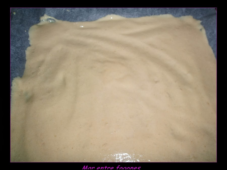 Ponemos la masa y la estiramos por la superficie del papel de horno.