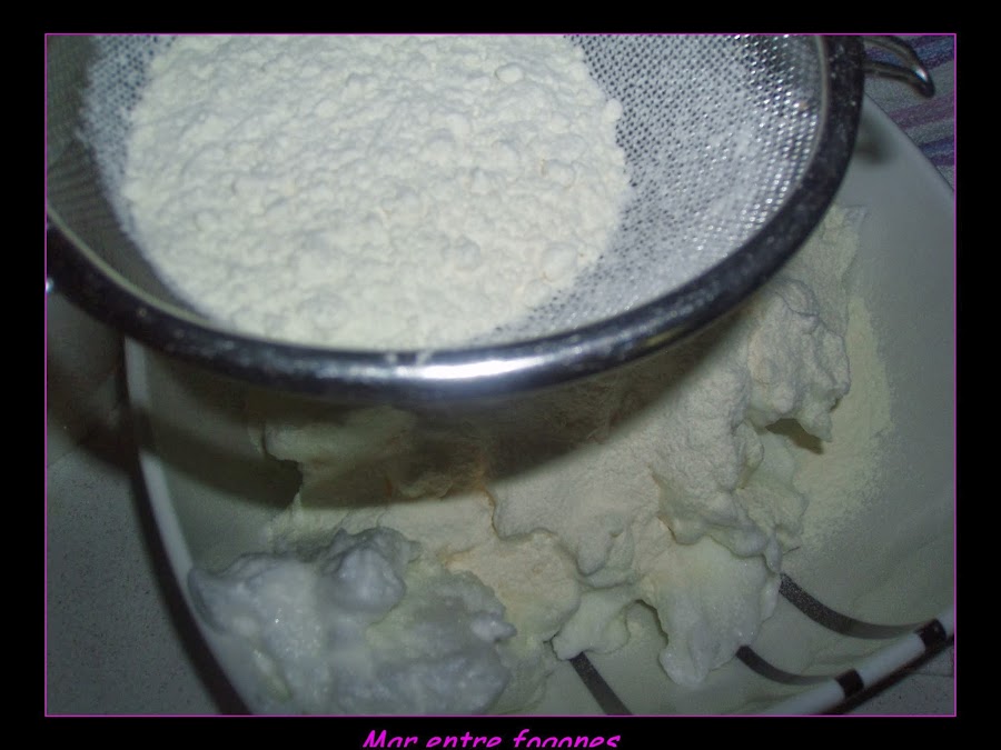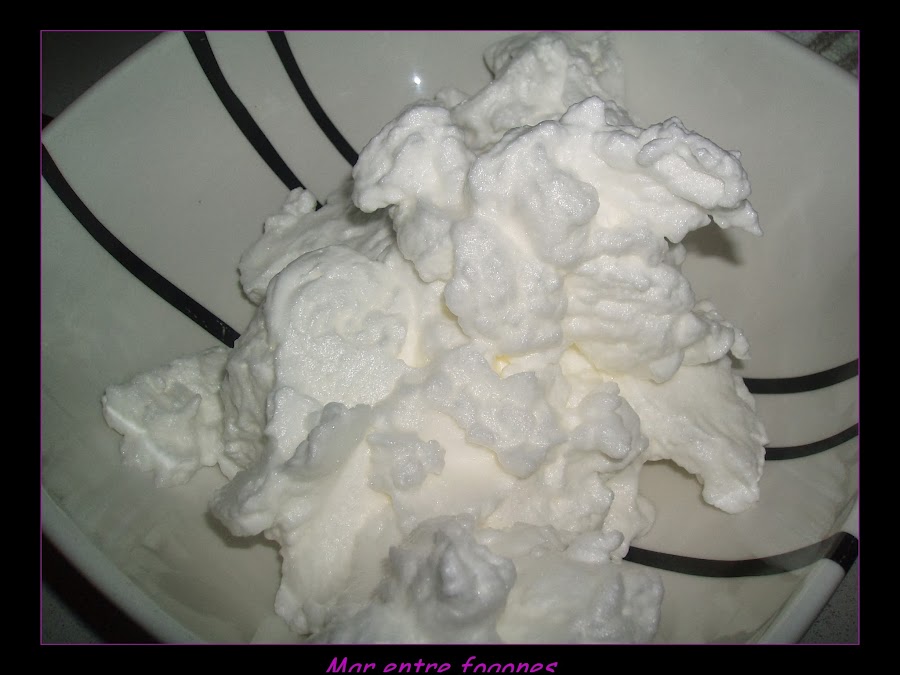 Batimos las claras a punta de nieve (bien firme) con un pellizco de sal.