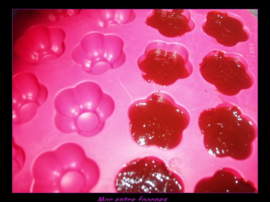 Yo hice con el chocolate de cobertura unos bombones con forma de flor para aprovecharla ya que me sobró.