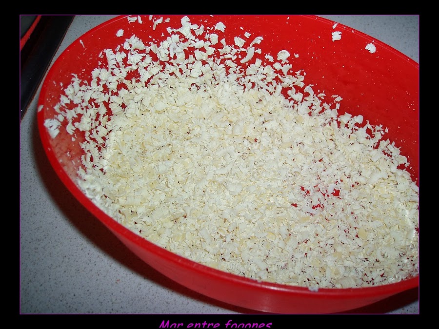 Rallamos un poco de chocolate blanco y lo esparcimos por encima como si fuera nieve.