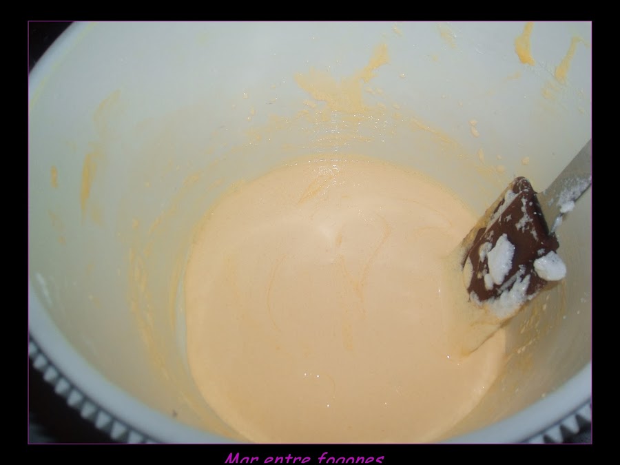 Batimos las yemas con el azúcar (mas o menos 5 minutos) hasta que la mezcla quede blanquecina.