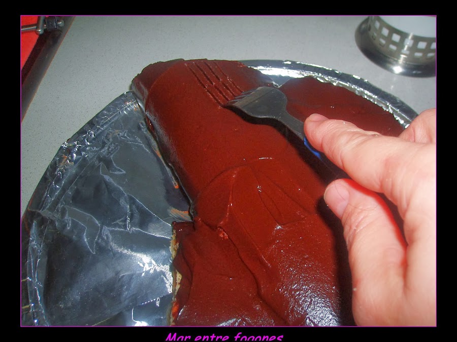 Alisamos la capa de chocolate con un cuchillo o espátula.